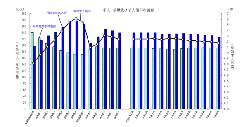 引用:厚生労働省『一般職業紹介状況(令和7年10月分)について』