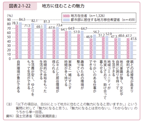 総務省「地域への人の流れに関するデータ」によると、地方移住希望者の多くが「豊かな自然環境」や「生活費の安さ」に魅力を感じていることが明らかになりました。