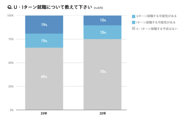 就活生のアンケートでは、23卒の3人に1人以上が「U・Iターンの可能性あり」と回答しています。