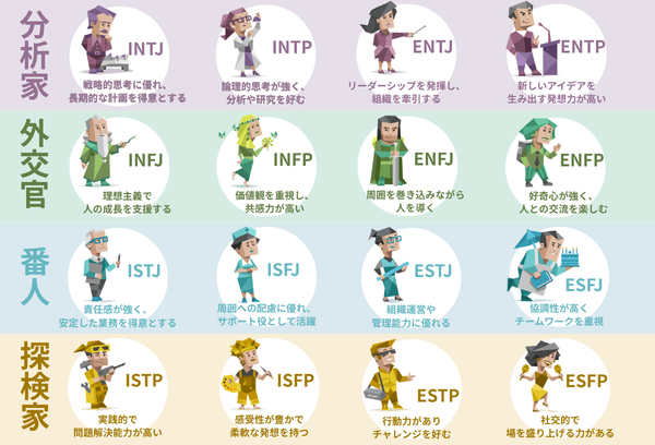 以下で、MBTIの詳しい種類について解説します。